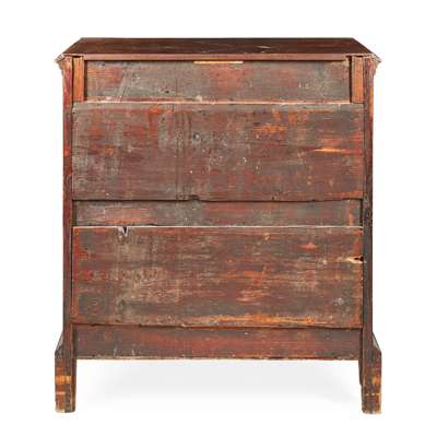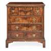 GEORGE II WALNUT AND FEATHER BANDED CHEST OF DRAWERS
