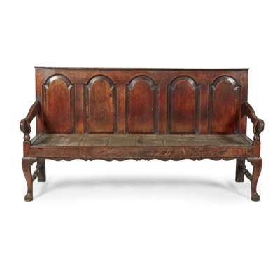 EARLY GEORGIAN OAK PANEL BACK SETTLE