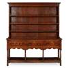 the upper section with a moulded cornice above three plate shelves with an enclosed back; the base with three short drawers with bone escutcheons above an ogee shaped frieze and undertier, raised on turned legs with stile feet