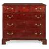 the top with a moulded edge over three short drawers and three long graduated drawers, raised on shaped bracket feet