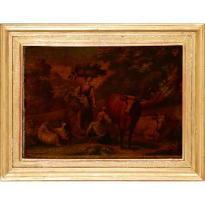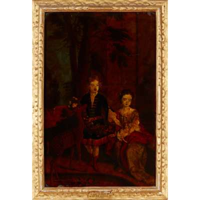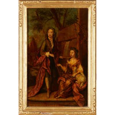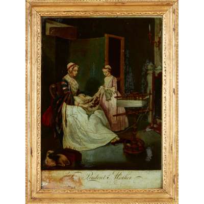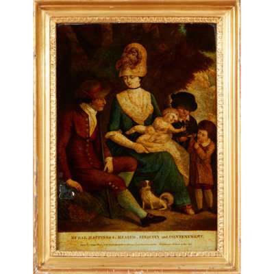 to include RURAL HAPPINESS, HEALTH FILICITY AND CONTENTMENT, printed for Carington Bowles, 1773; THE PRUDENT MOTHER, printed by Thomas Burford; DOMESTIC EMPLOYMENT. NEEDLEWORK, printed by Robert Sayer & John Bowles & Son; THE MILKING MAID, published by Simon, after Berkam; PORTRAIT OF A LADY, printed by J. McArdell, after Francis Cotes, 1756; LORD NEWBATTLE & LADY ELIZABETH KARR, printed by Robert Sayer; THE LORD EUSTON, by John Smith, after Kneller, 1689; THE 1ST DUKE OF DORSET & LADY MARY SACKVILLE, after Kneller; LORD WILLIAM VILLIERS & HIS SISTER LADY MARY VILLIERS, after Kneller; WILLIAM III, by John Smith, after Kneller; and TWO HUNTING SUBJECTS, after Carle Vernet; most in period giltwood frames