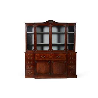 GEORGE III MAHOGANY AND INLAID BREAKFRONT SECRETAIRE BOOKCASE