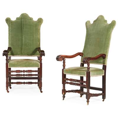 PAIR OF WILLIAM AND MARY STYLE WALNUT ARMCHAIRS