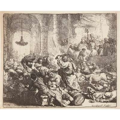 CHRIST DRIVING THE MONEY CHARGERS FROM THE TEMPLE (BARTSCH 69)
