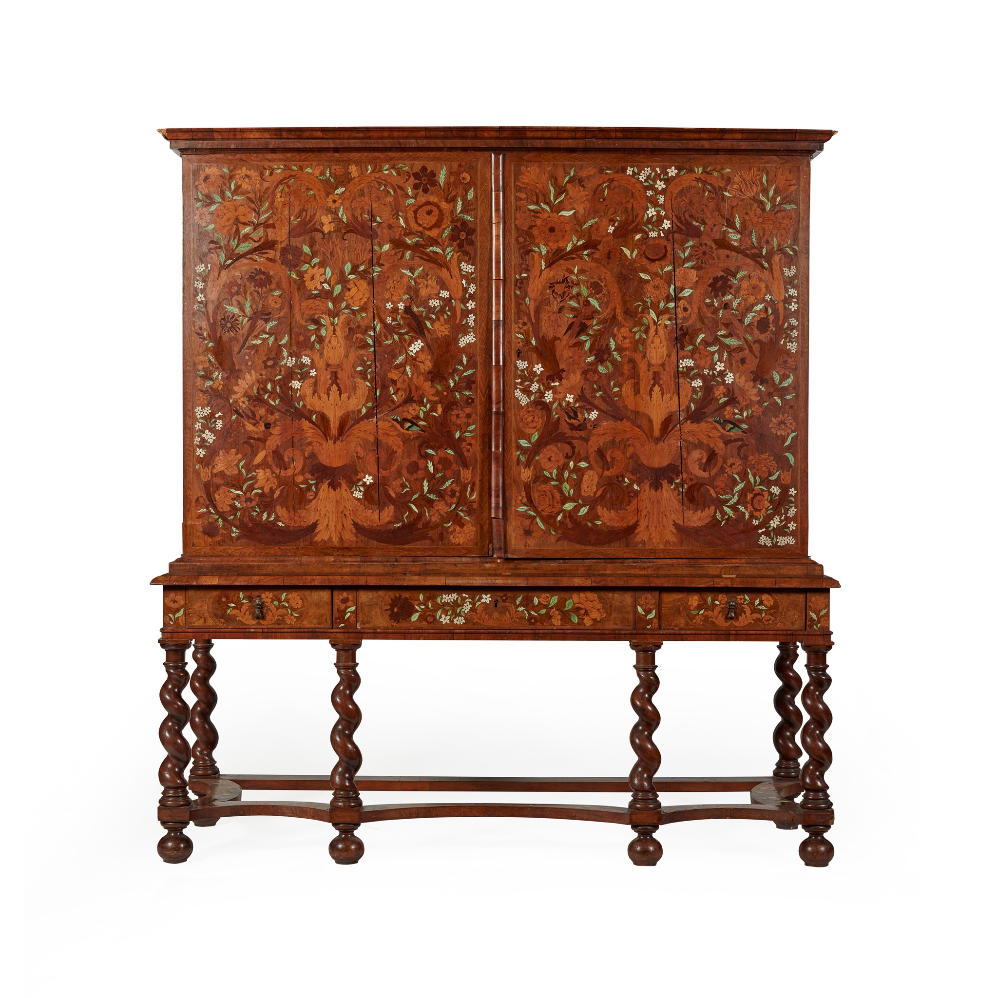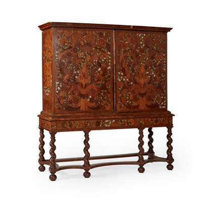 DUTCH WALNUT AND FLORAL MARQUETRY CABINET-ON-STAND, IN THE MANNER OF VAN MECKEREN Y