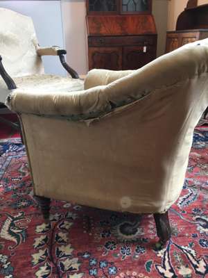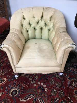 VICTORIAN MAHOGANY UPHOLSTERED TUB CHAIR