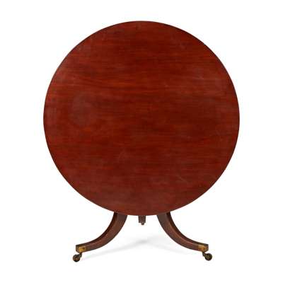 REGENCY MAHOGANY AND INLAID TILT TOP TABLE