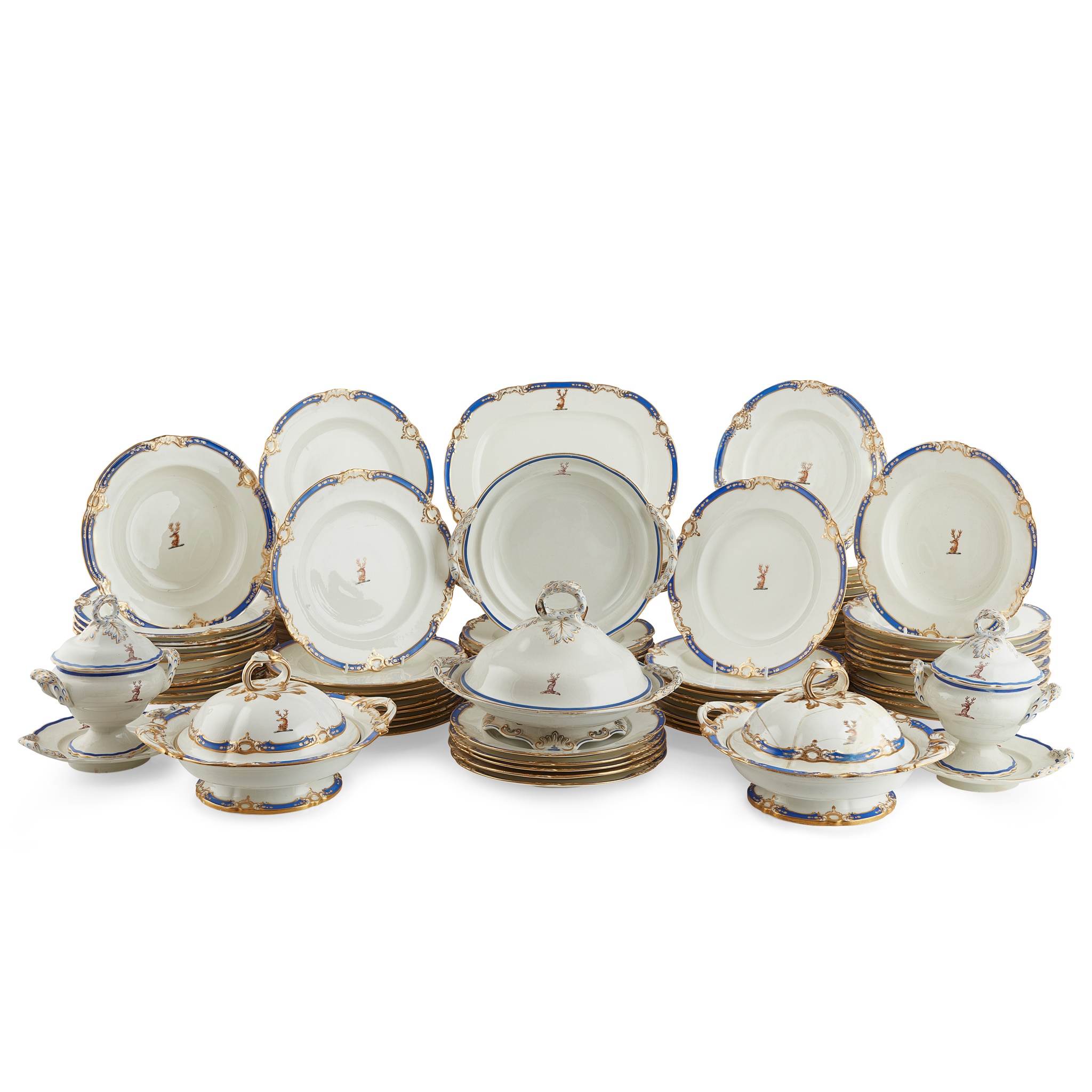 EXTENSIVE ENGLISH PORCELAIN PART DINNER SERVICE, BEARING THE FAMILY CREST FOR LLOYD