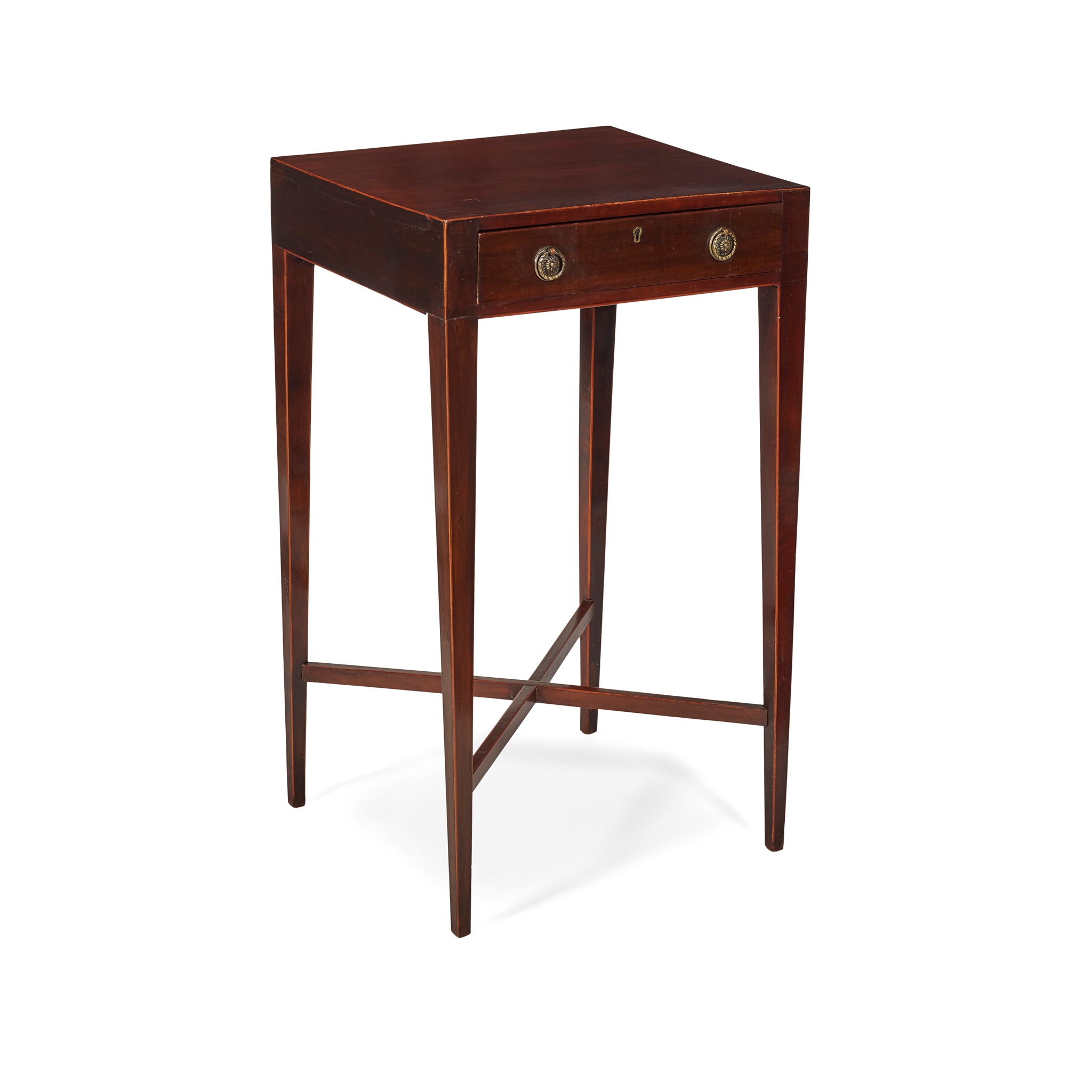 the square top above a frieze drawer, raised on square tapered legs joined by an X stretcher