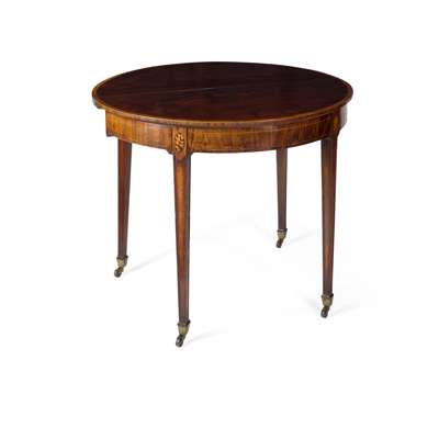 GEORGE III MAHOGANY, KINGWOOD, AND INLAY TEA TABLE