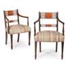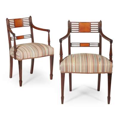 PAIR OF GEORGE III MAHOGANY AND SATINWOOD ARMCHAIRS