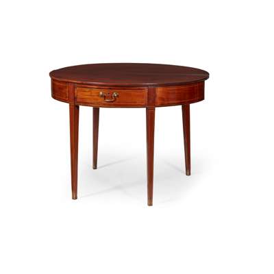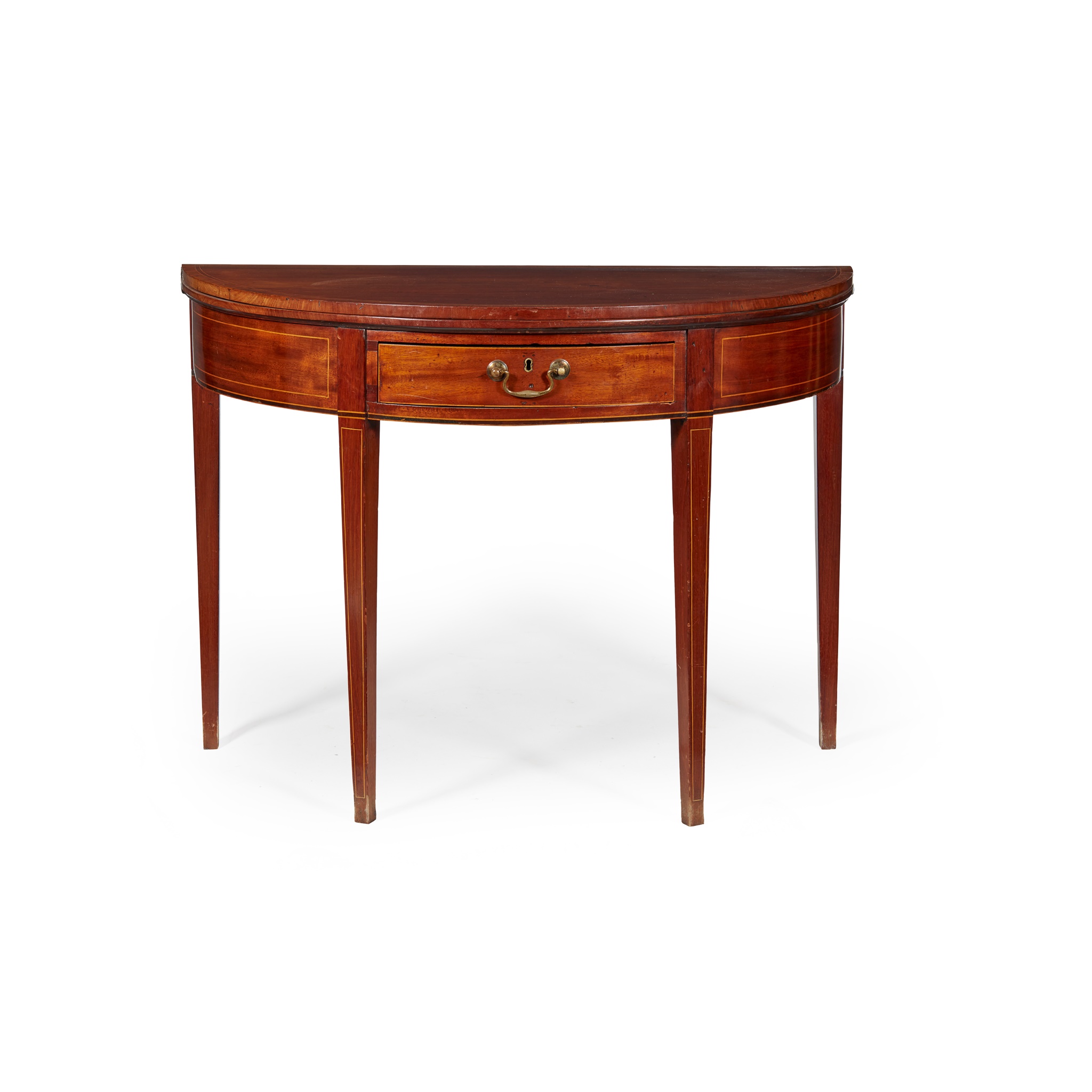 GEORGE III MAHOGANY AND KINGWOOD DEMI-LUNE TEA TABLE