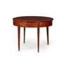 the fold-over top opening on double gatelegs, above a central frieze drawer, raised on square tapered legs with line inlay