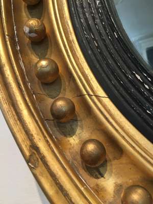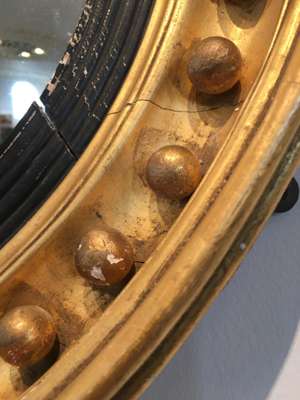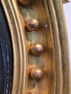 REGENCY GILTWOOD AND EBONISED CONVEX MIRROR