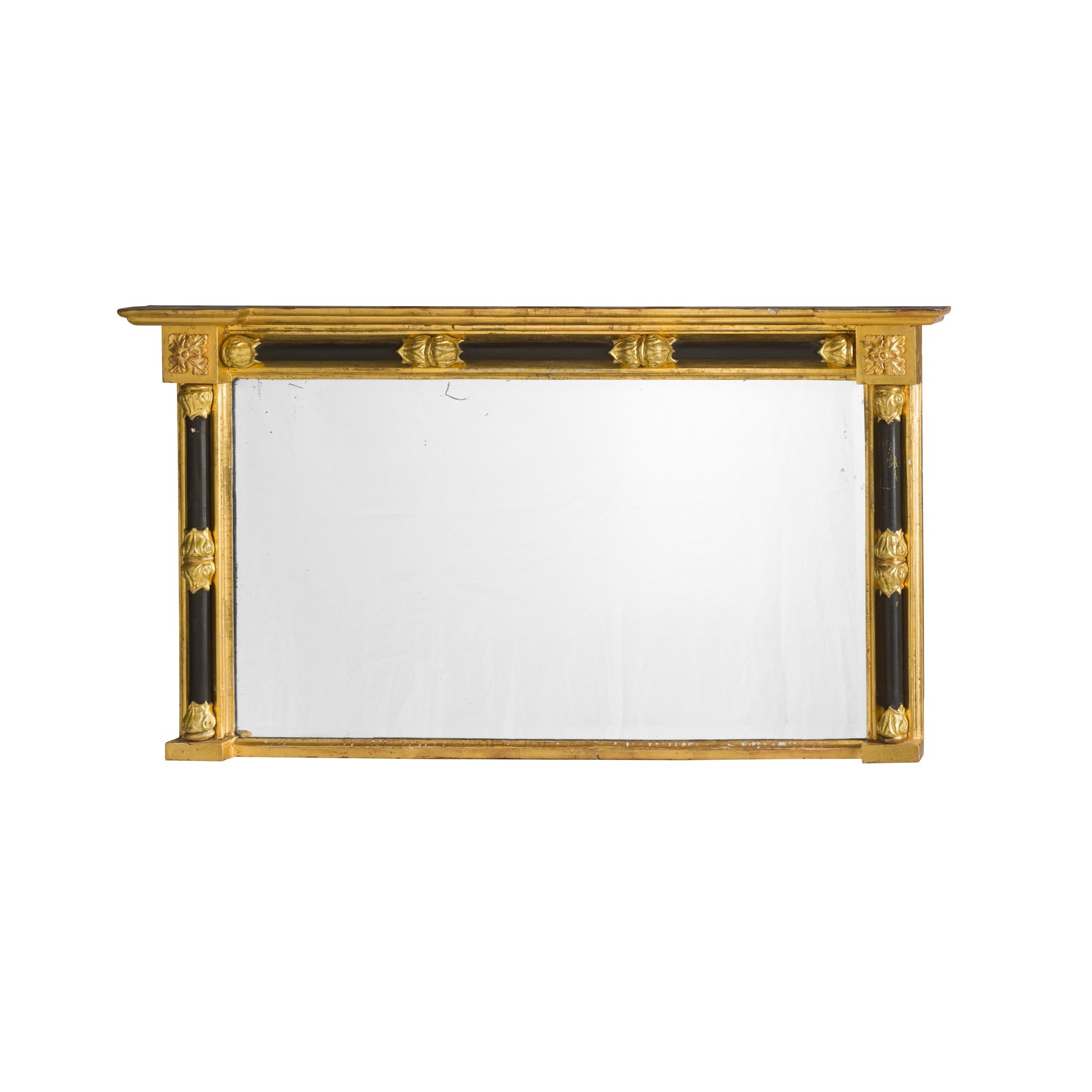 REGENCY GILT AND EBONISED OVERMANTEL MIRROR