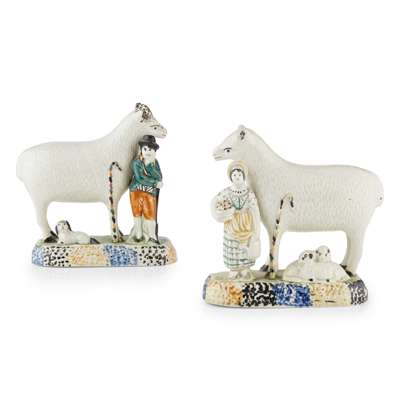 PAIR OF YORKSHIRE PEARLWARE FIGURES OF A RAM AND A SHEEP