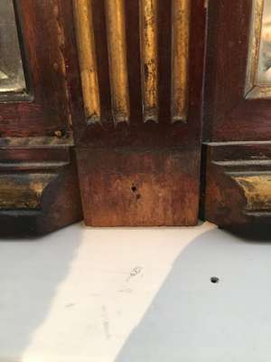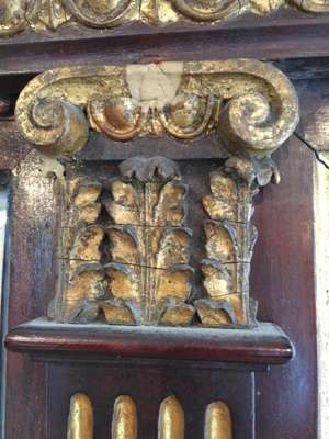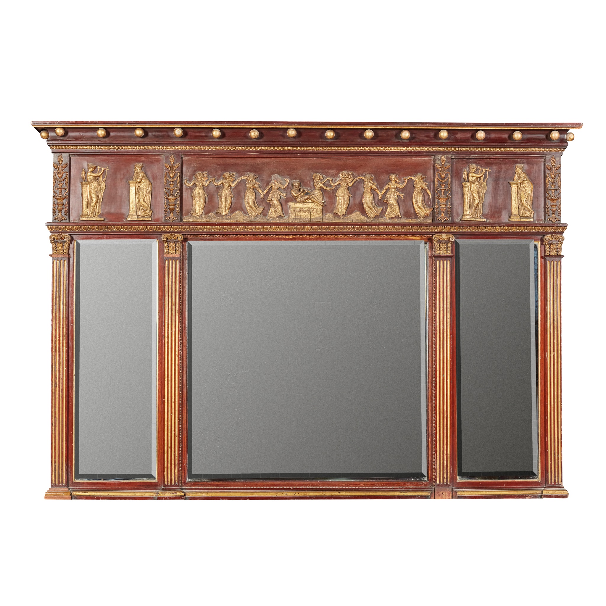LATE REGENCY MAHOGANY, GESSO, AND GILTWOOD TRIP OVERMANTEL MIRROR