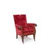 the square back above a loose cushion seat and outscrolled arms, the lyre form mahogany facing carved with acanthus scrolls, raised on leaf carved legs ending in brass caps and ceramic castors; covered in deep red cut velvet