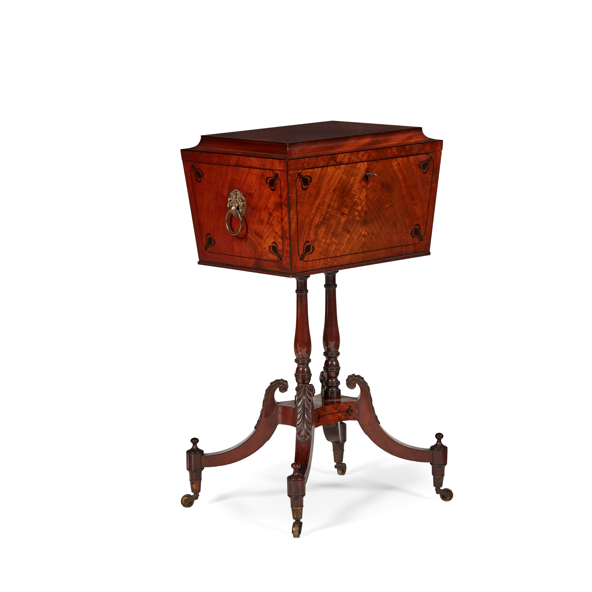 REGENCY MAHOGANY AND EBONY INLAID TEAPOY
