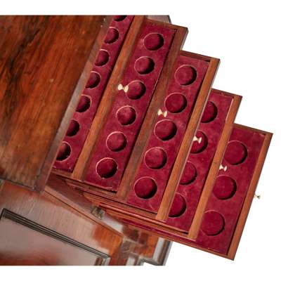 GEORGE IV ROSEWOOD AND BRASS INLAID COLLECTOR'S CABINET, IN THE MANNER OF GEORGE BULLOCK Y