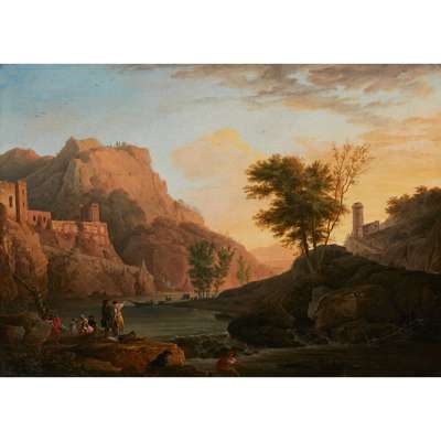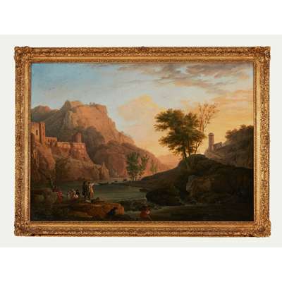 A CLASSICAL LANDSCAPE AT SUNRISE