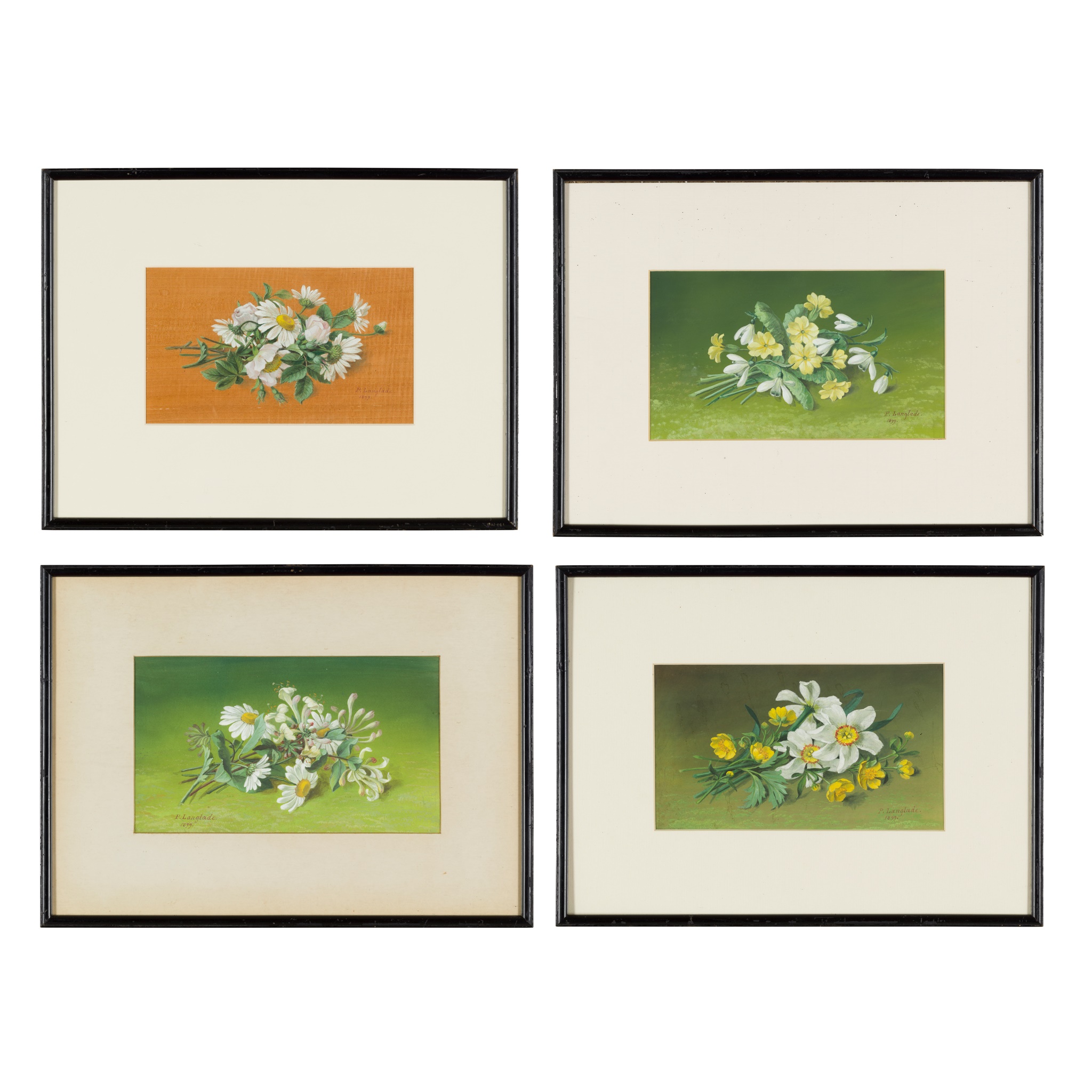 14.5cm x 25cm (5.75in x 9.75) and three other similar works by the same hand