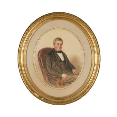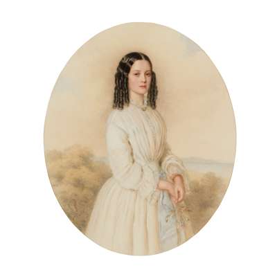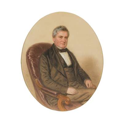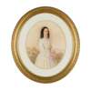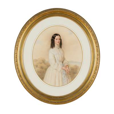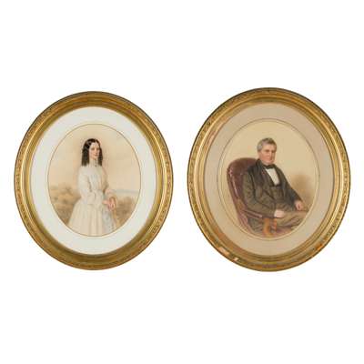 Signed and dated 1854, oval, watercolour and a companion male portrait by the same hand dated 1856