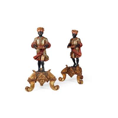 PAIR OF VENETIAN CARVED, POLYCHROMED AND GILT FIGURES OF NORTH AFRICAN ATTENDANTS