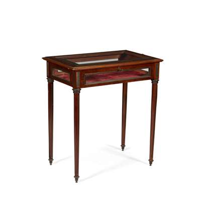 FRENCH MAHOGANY BRASS BANDED VITRINE TABLE