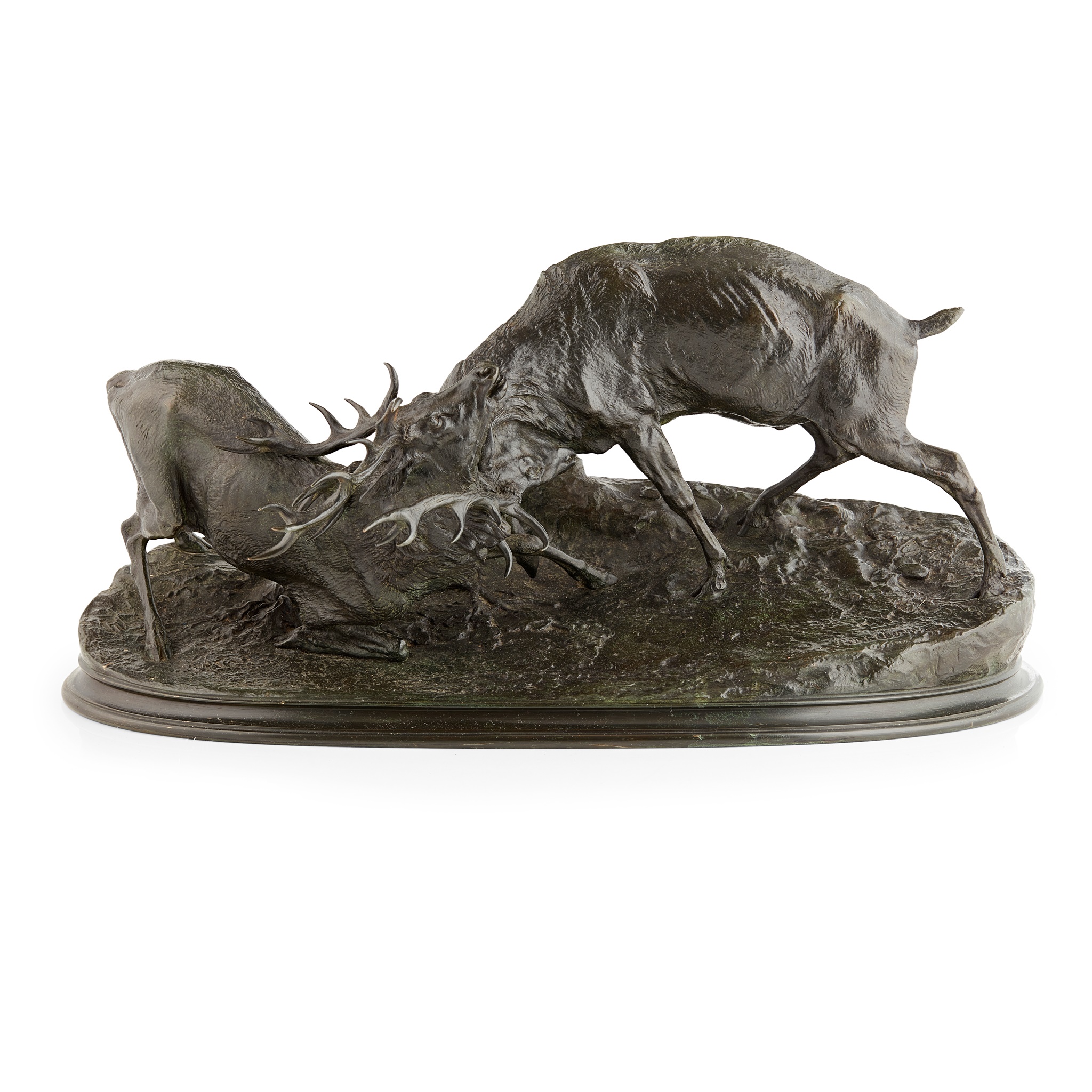 bronze, green/brown patina, on an oval base, signed P.J. MENE