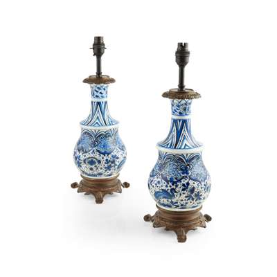 PAIR OF IZNIK TYPE PORCELAIN AND BRONZE BOTTLE VASE LAMPS