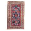 the indigo field with allover red medallion and harshang pattern, within red geometric border