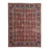 the red field with allover palmette pattern, within indigo palmette and vine border