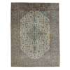 the light grey field with dark grey medallion, similar spandrels, within grey palmette and vine border