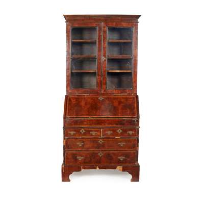 GEORGE II WALNUT BUREAU BOOKCASE