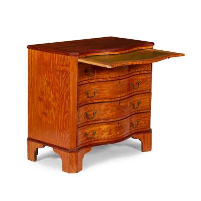 GEORGIAN STYLE SATINWOOD AND MARQUETRY SERPENTINE CHEST OF DRAWERS