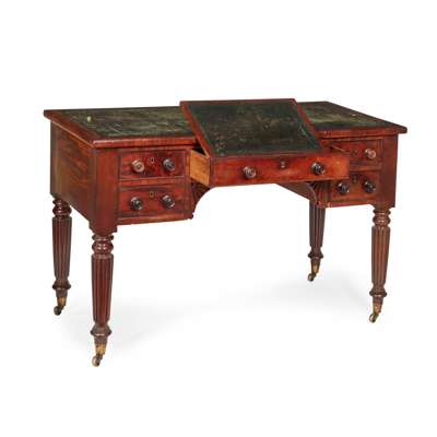 LATE REGENCY LEATHER-TOPPED MAHOGANY DESK, IN THE MANNER OF GILLOWS
