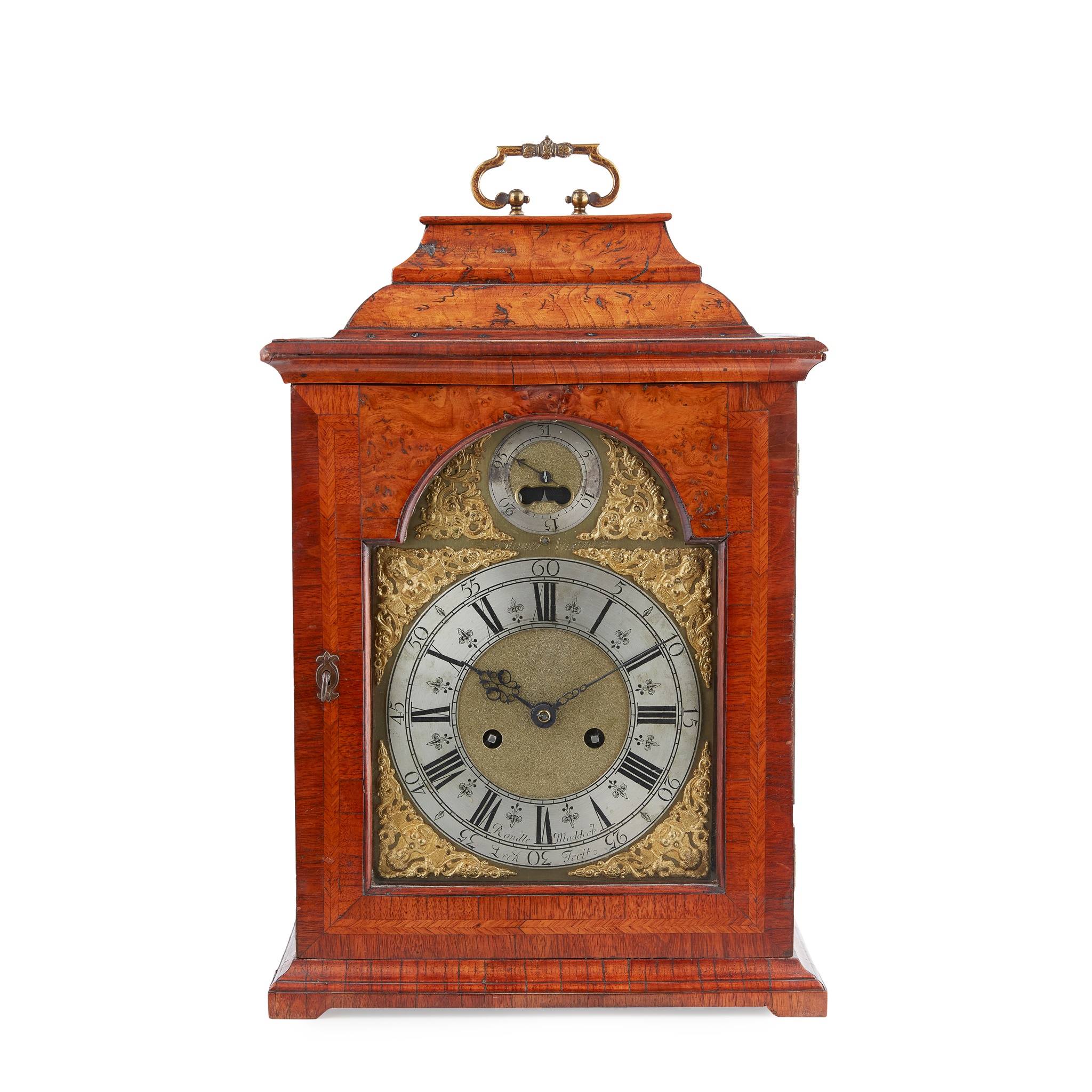 GEORGE II BURR YEW AND WALNUT BRACKET CLOCK, RANDLE MADDOCK OF LEEK