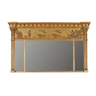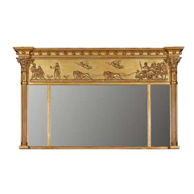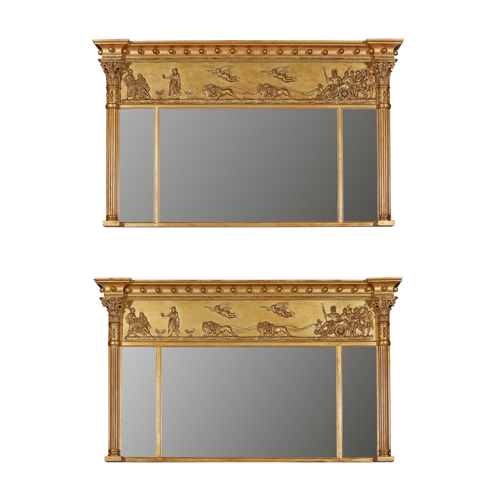 PAIR OF REGENCY GILT AND GESSO 'APOLLO' TRIPLE OVERMANTEL MIRRORS
