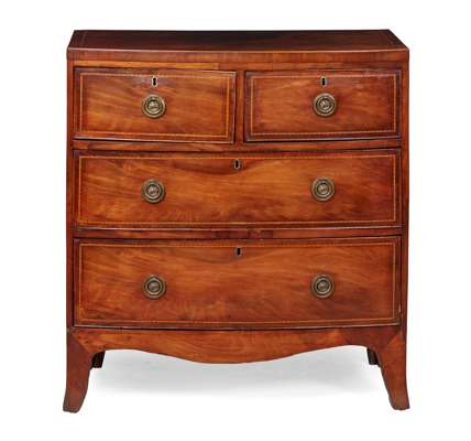 REGENCY MAHOGANY CHEQUER BANDED BOWFRONT CHEST OF DRAWERS