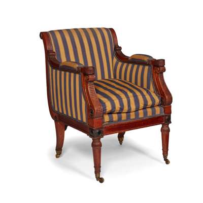 REGENCY OAK AND EBONISED LIBRARY ARMCHAIR, IN THE MANNER OF GEORGE BULLOCK