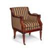 covered in blue and gold striped silk upholstery