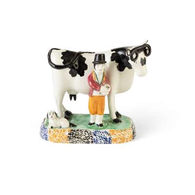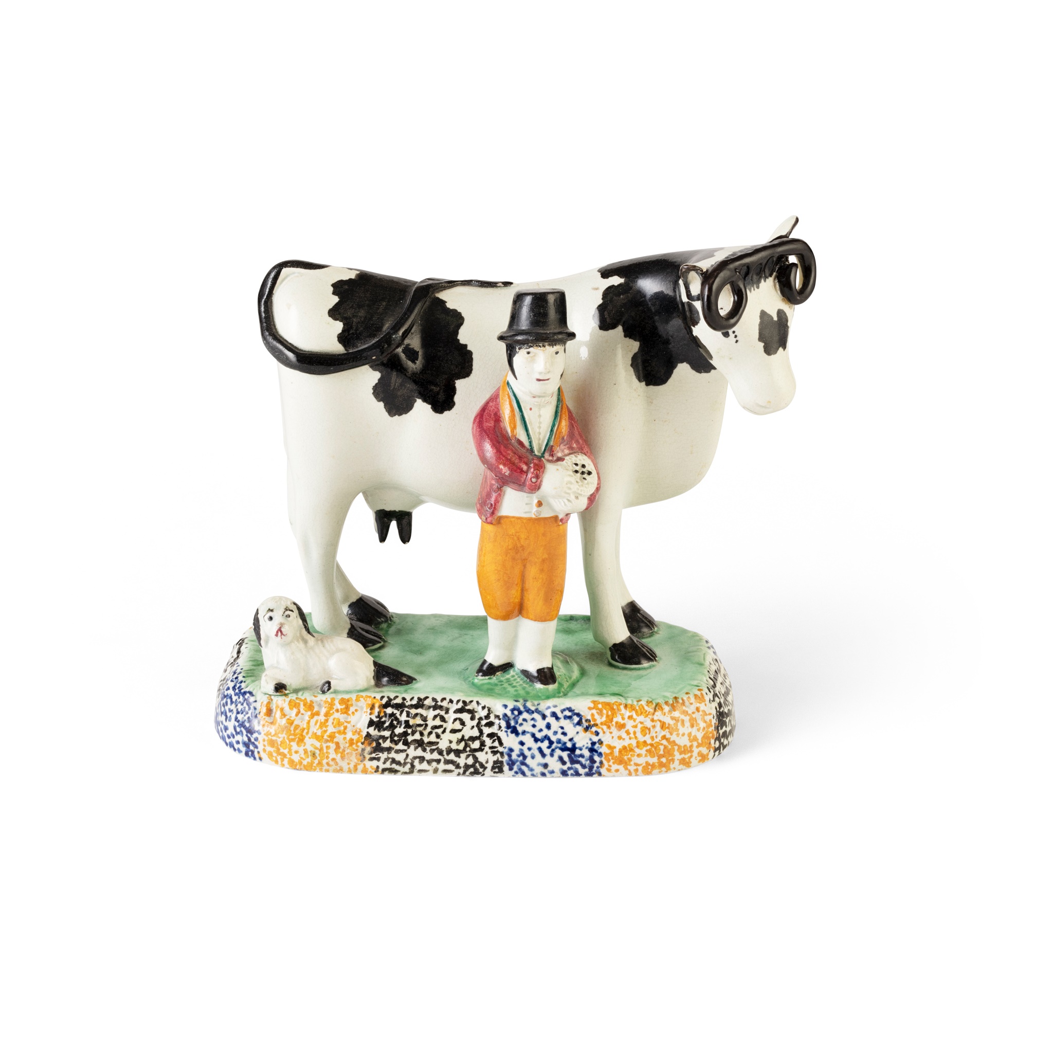 YORKSHIRE POTTERY PRATTWARE COW FIGURE GROUP