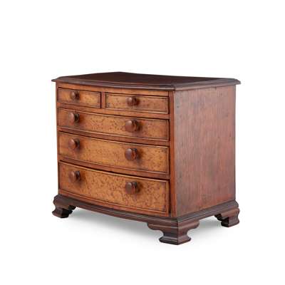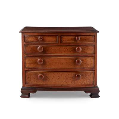 VICTORIAN MINIATURE BURR WALNUT CHEST OF DRAWERS