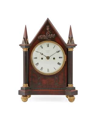 the Gothic Revival case carved with a thistle, with a twin train fusee movement, pull repeat mechanism, the backplate engraved Ganthony/ 83, Cheapside/ London