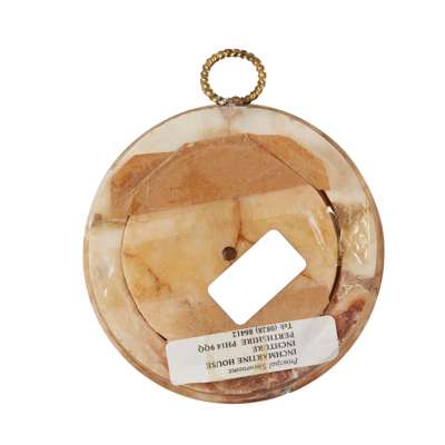 12cm diameter overall, ivory plaques 5cm high 3.5cm wide