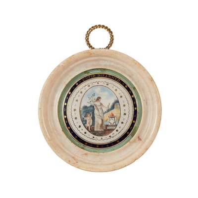 TWO ALABASTER FRAMED ROUNDELS OF VENUS AND CUPID Y