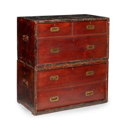 TEAK PAINTED BRASS MOUNTED CAMPAIGN CHEST OF DRAWERS