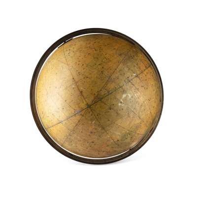 mounted with a brass meridian, 18 gore, the circular cartouche printed 'Carys New and improved CELESTIAL GLOBE on which is carefully laid down the whole of the stars and nebulae contained in the astronomical catalogue of the Revd. Mr Wollaston, FRS, compiled from the authorities of Flamsteed, De La Caille, Hevelius, Mayer, Bradley, Herschil, Mashelyn, & C. with an exteufive number from the works of Mifs. Herschel. The whole adapted to the year 1800 and the limits of the constellation decriment by a boundry line. LONDON. Sold by M Berge (late Ramsden) No. 199 Picadilly Jan 1801'; the stand lacking