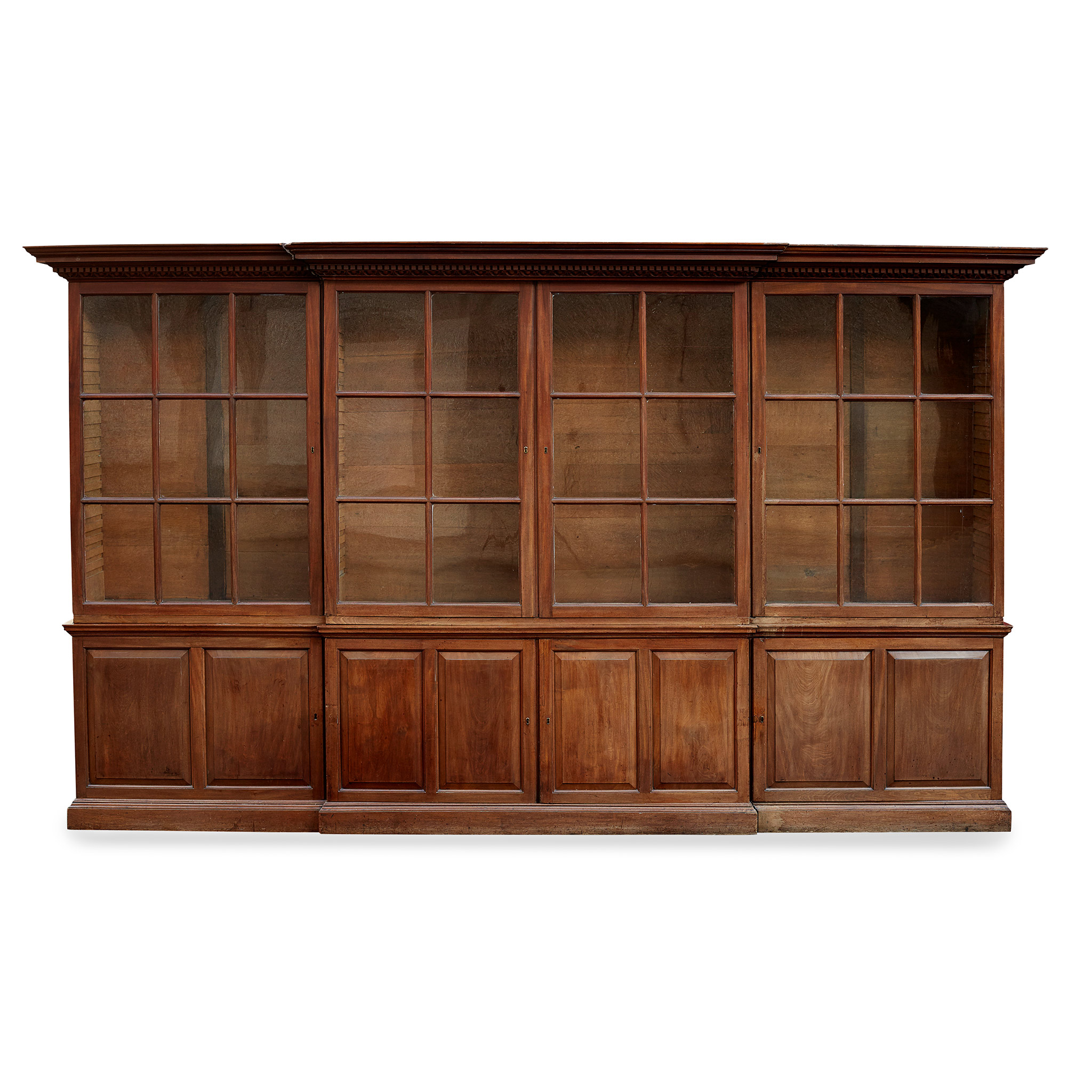 GEORGIAN STYLE MAHOGANY BREAKFRONT LIBRARY BOOKCASE